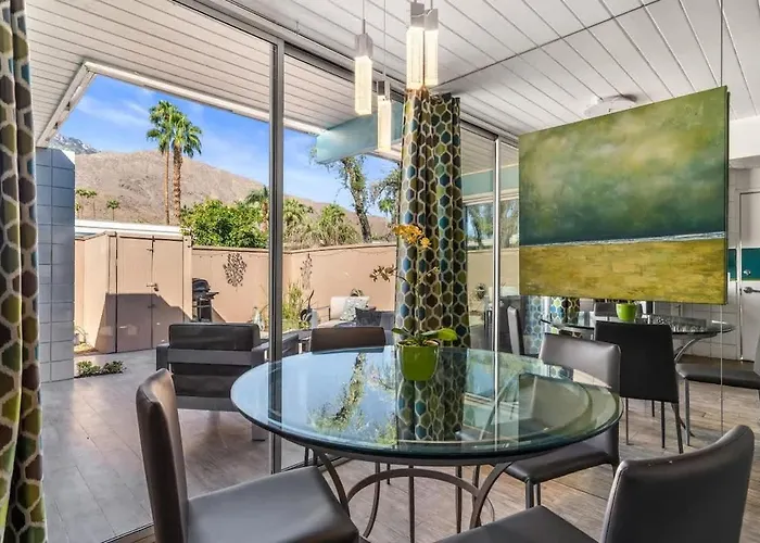 Cet établissement Luminous Ocotillo Bungalow Palm Springs est situé à 5 minutes de marche de Feel Good Spa et propose à ses clients de se détendre avec un bain chaud. Dotée d'un accès à une terrasse, la villa est située à 4 km du Parc aquatique Wet'n'Wild Palm Springs.